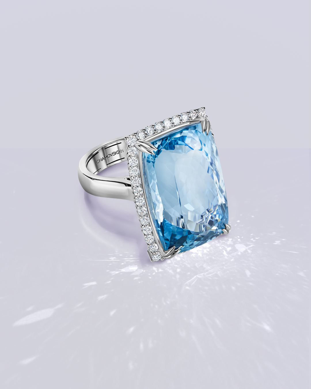 На латыни аквамарин означает «морская вода», а бриллиант происходит от греческого слова «нерушимый». Изысканный дизайн украшений с аквамаринами и бриллиантами выражает идеальный баланс между силой и изяществом. В необыкновенных камнях воплощаются все оттенки воды, от быстрых ручьев до озер, покрытых льдом, от горных водопадов до морских глубин. Каждая драгоценность Chamovskikh иллюстрирует исключительное мастерство и творческую фантазию ювелирного дома.