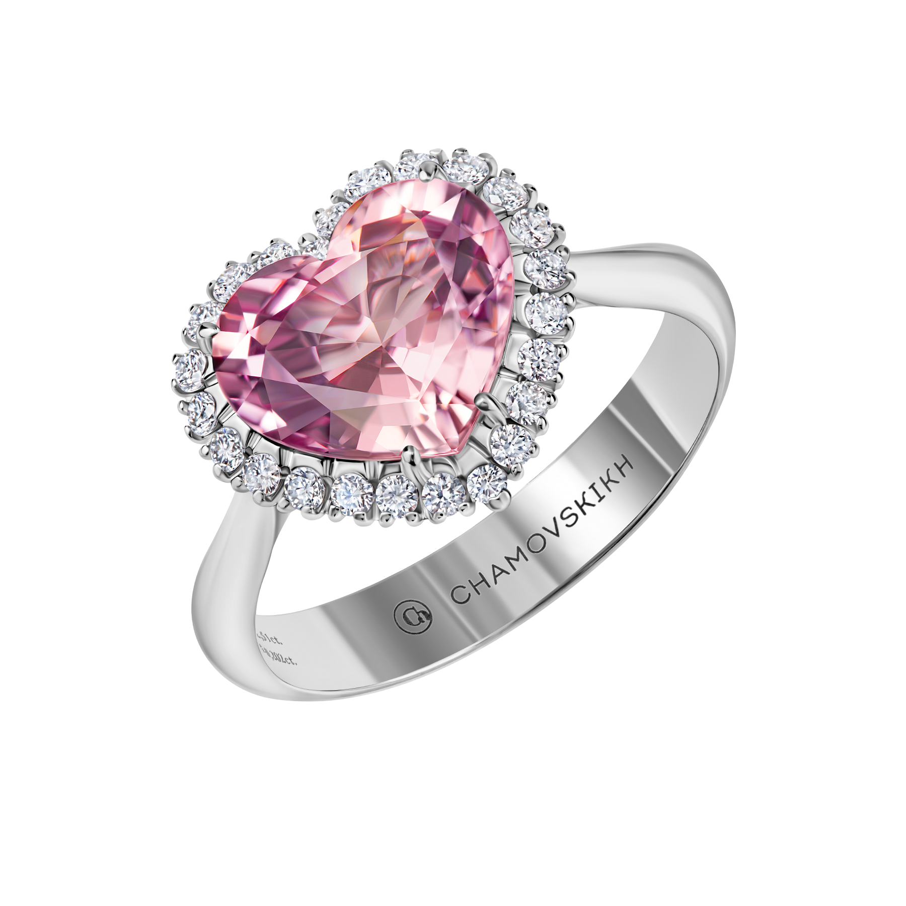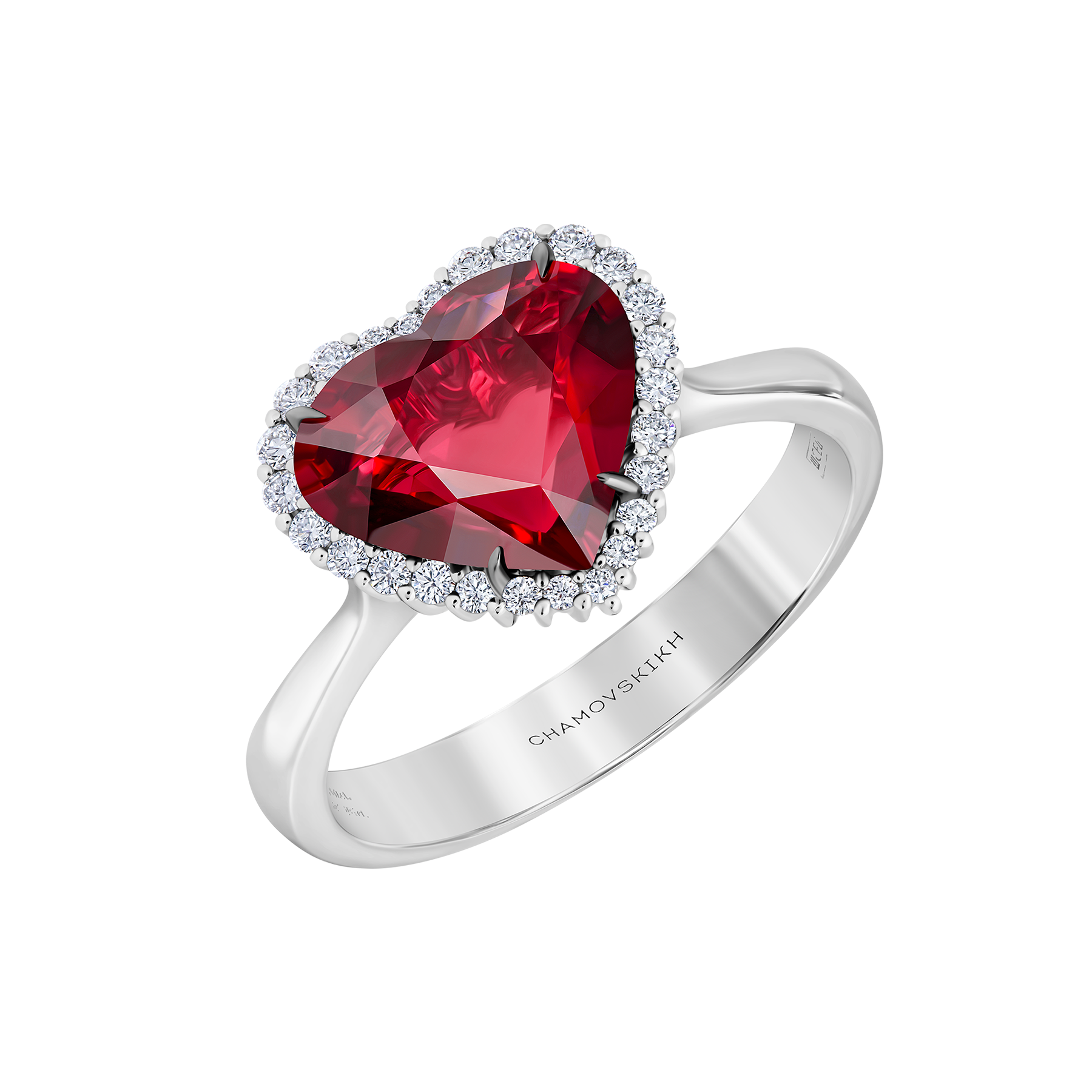 Нежное кольцо с благородной шпинелью огранки «сердце» с легкостью заменит вербальное признание в чувствах. Инкрустация 24 бриллиантами подчеркивает чувственность солирующего самоцвета весом более 2 ct. Классический дизайн композиции позволит интегрировать аксессуар в повседневные и вечерние образы.