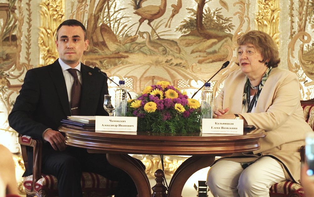 Елена Яковлевна поделилась своим впечатлением о драгоценностях: – Меня, во-первых, поразил тот изысканный вкус, с которым эти вещи сделаны. И я вижу, сколько вкуса – здесь бездна вкуса: именно это сочетание камня, формы, эти замечательные вещи, которые представляют собой Большой дворец, эти партеры наши замечательные зеленые, фонтаны. Они сделаны очень-очень тонко и стильно.