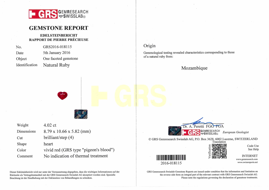 Коллекционный вес для рубинов с отметкой Vibrant или Vivid начинается от 5 карат. Топовые геммологические лаборатории, например GRS, прилагают к сертификатам специальную серию - GRS Platinum, обозначающую особый статус драгоценного камня.