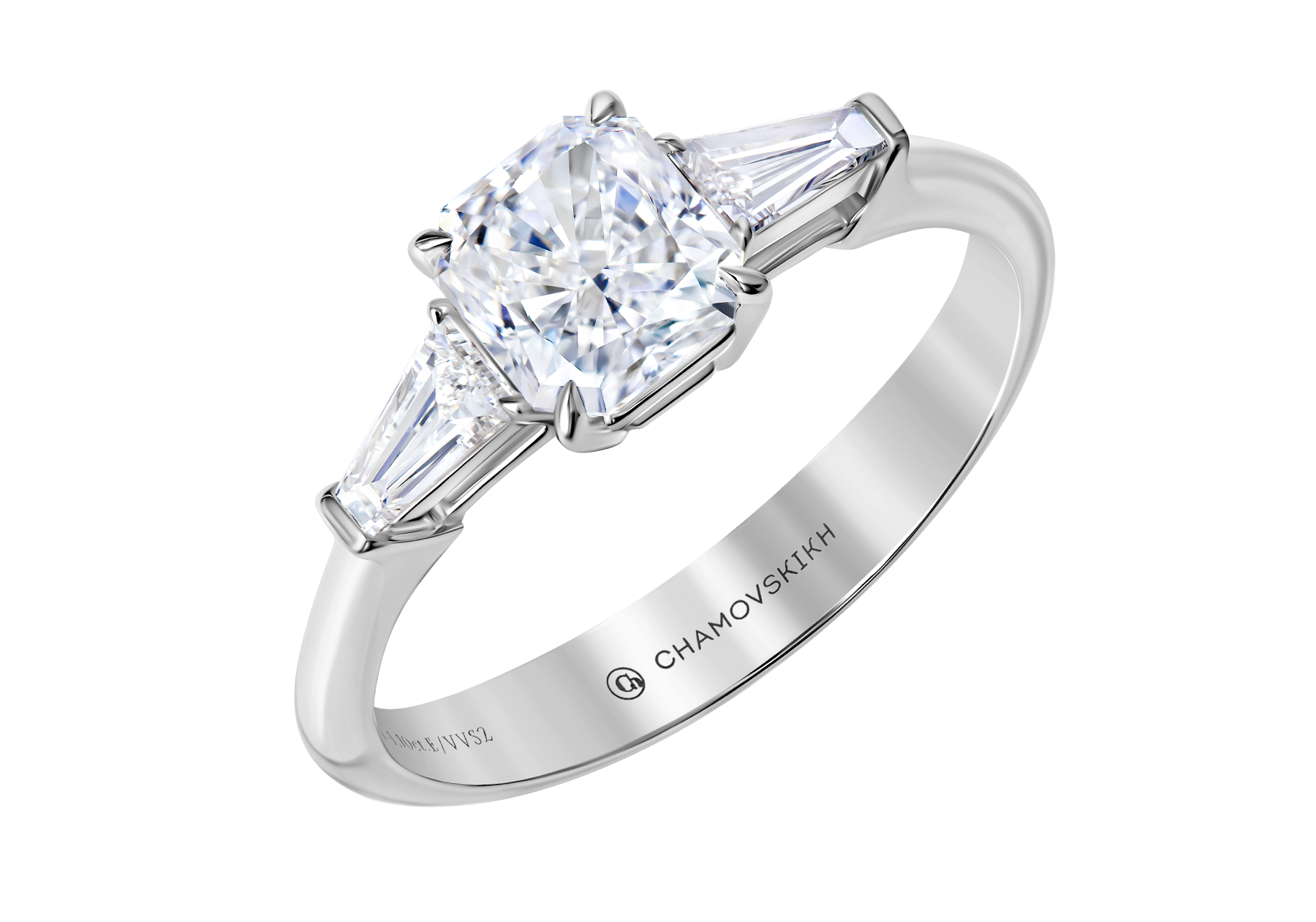 Идеальное помолвочное кольцо – синергия вневременного дизайна и личного значения. Это то украшение, которое сопровождает вас днем и ночью, поэтому так важно, чтобы оно отличалось комфортом и тактильной привлекательностью. Композиция обворожительного кольца из коллекции Classic строится вокруг прекрасного бриллианта в огранке «радиант» весом более 1 ct. Завораживающую игру его драгоценных искр усиливает сияние двух бриллиантовых «багетов». Это кольцо станет воплощением мечты о классическом украшении.