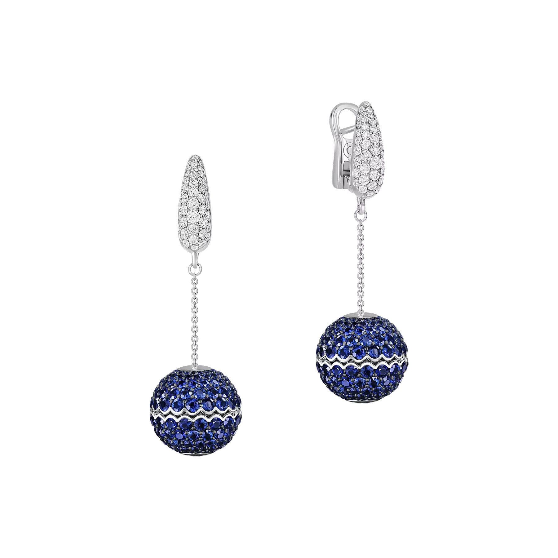 В серьгах-трансформерах из коллекции Jazz Age роскошь драгоценных камней сочетается с новаторством дизайнерской идеи. Более 350-и сапфиров в инкрустации подвесных элементов в динамике демонстрируют пленительное сияние и эталонный синий цвет. Уникальная конструкция серег позволяет экспериментировать, используя различные модификации украшения. Благодаря запатентованному механизму ювелирного дома CHAMOVSKIKH, обладательница может самостоятельно регулировать длину подвеса или снять его, оставив самый лаконичный вариант трансформации — классические бриллиантовые серьги.