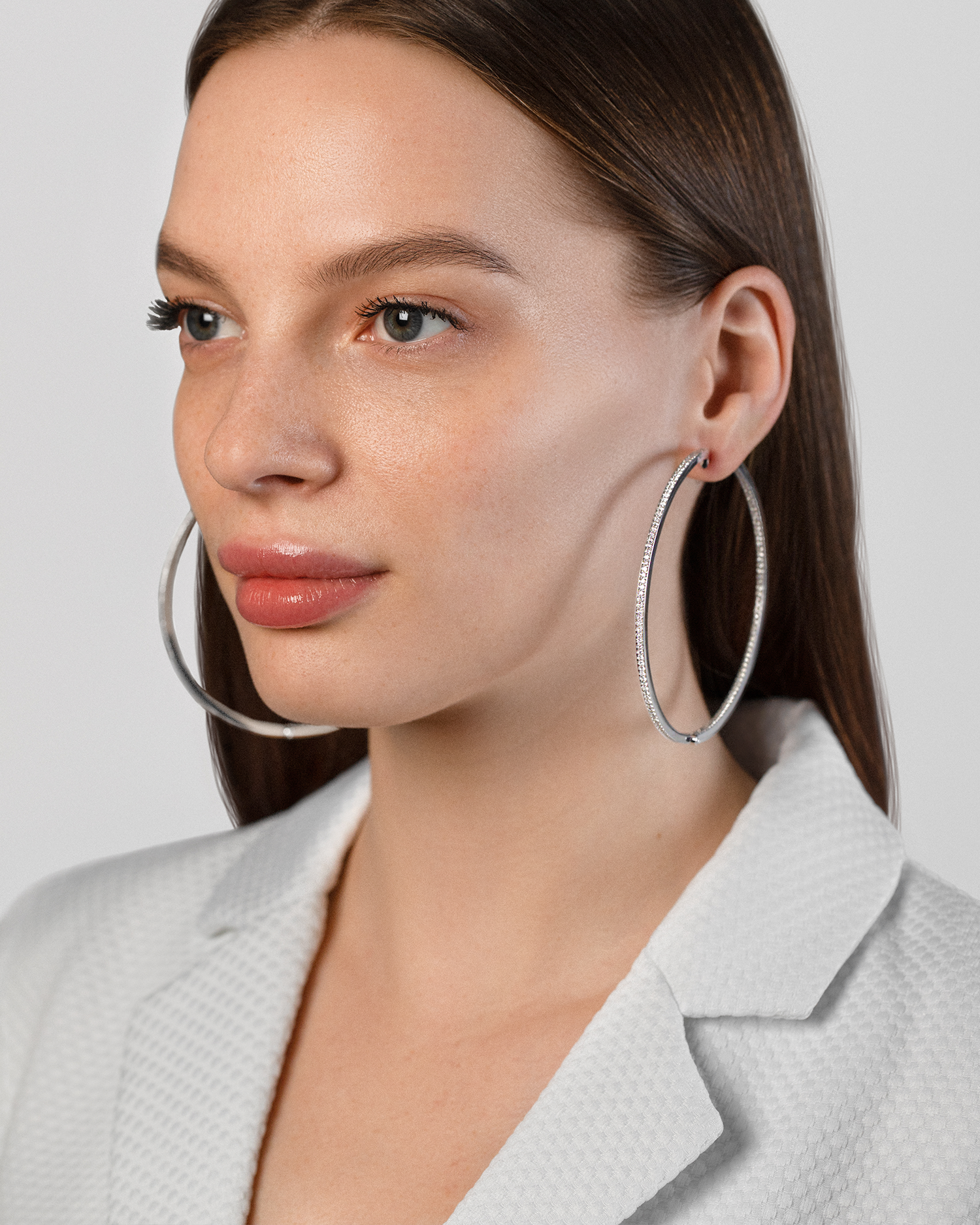 Пусеты с бриллиантами, белое золото