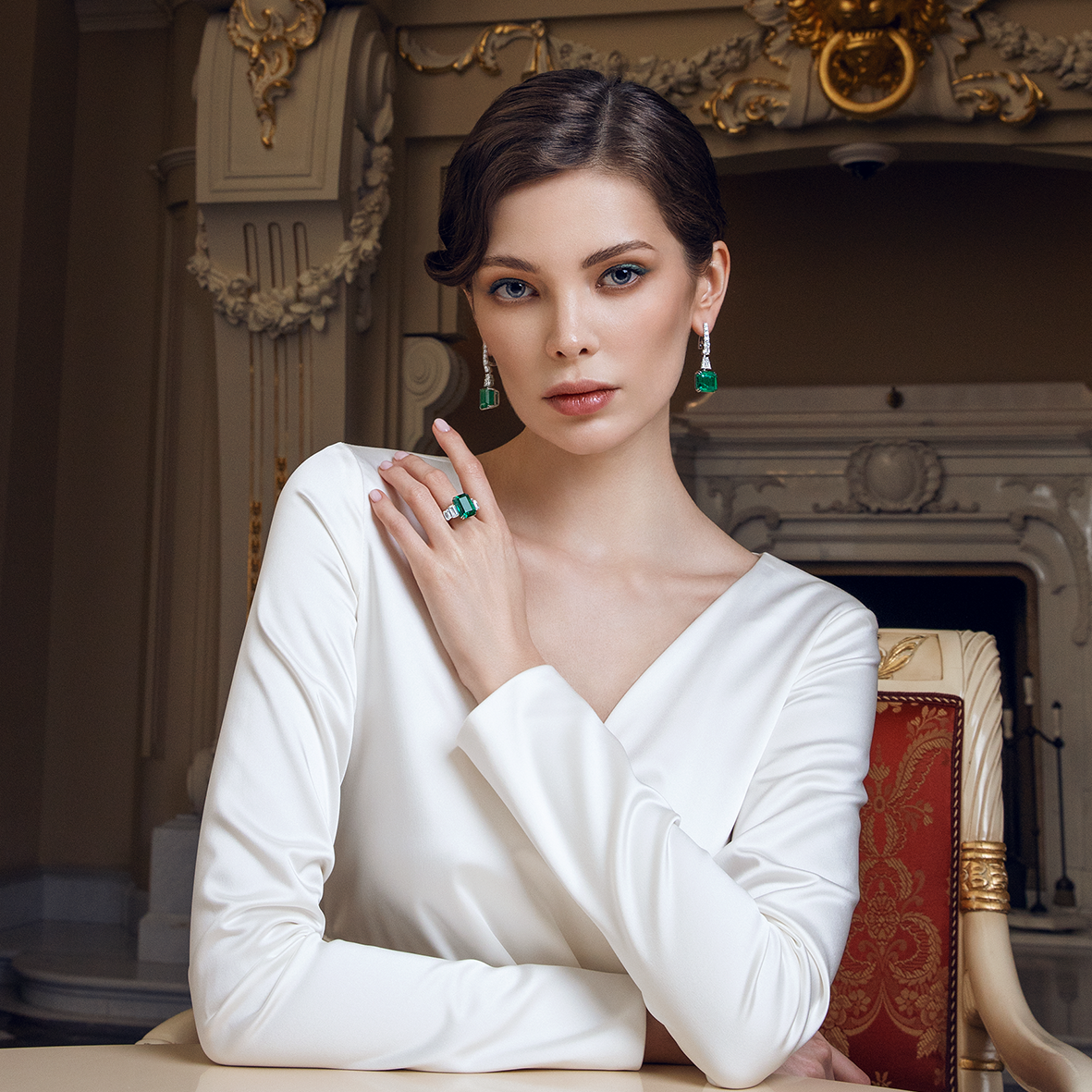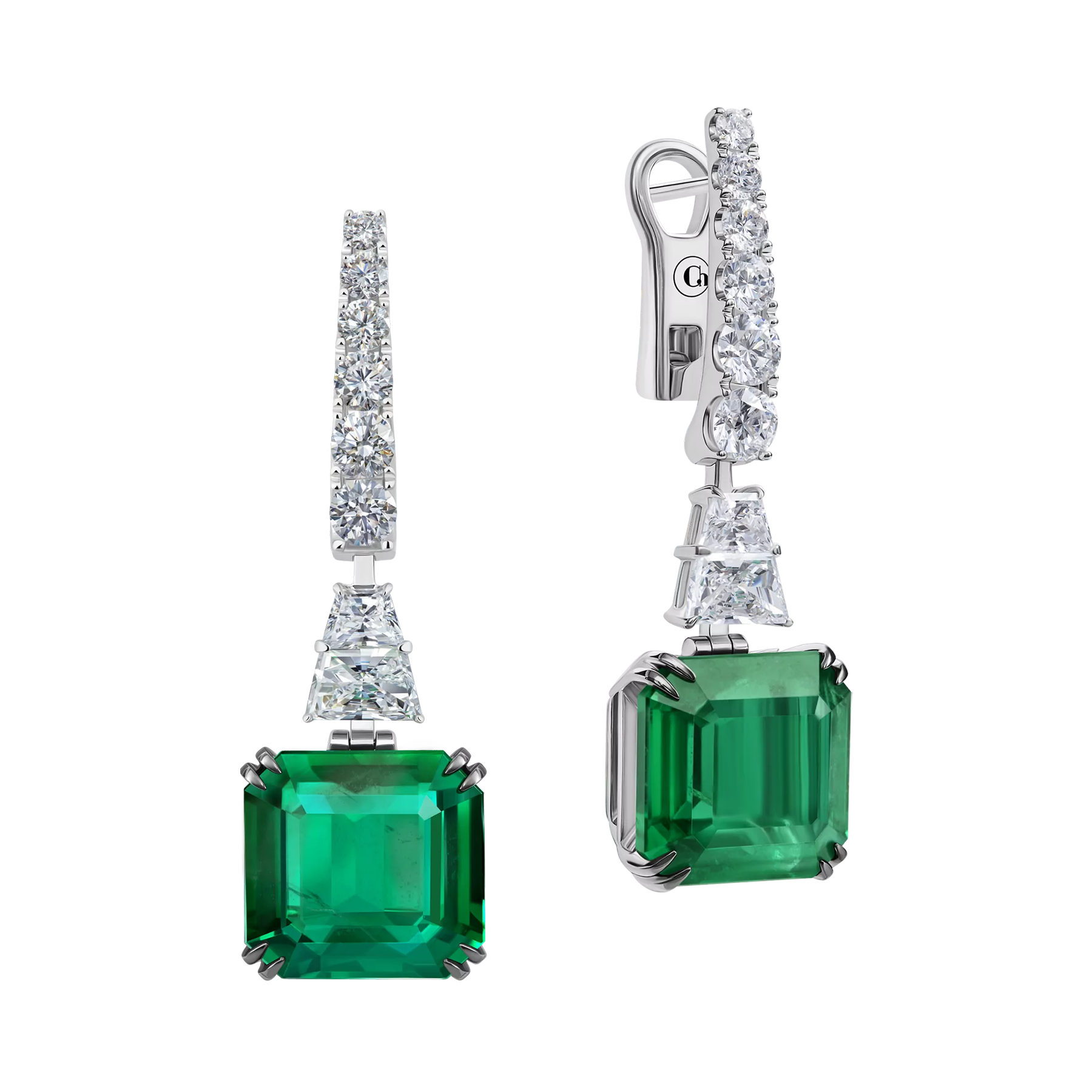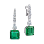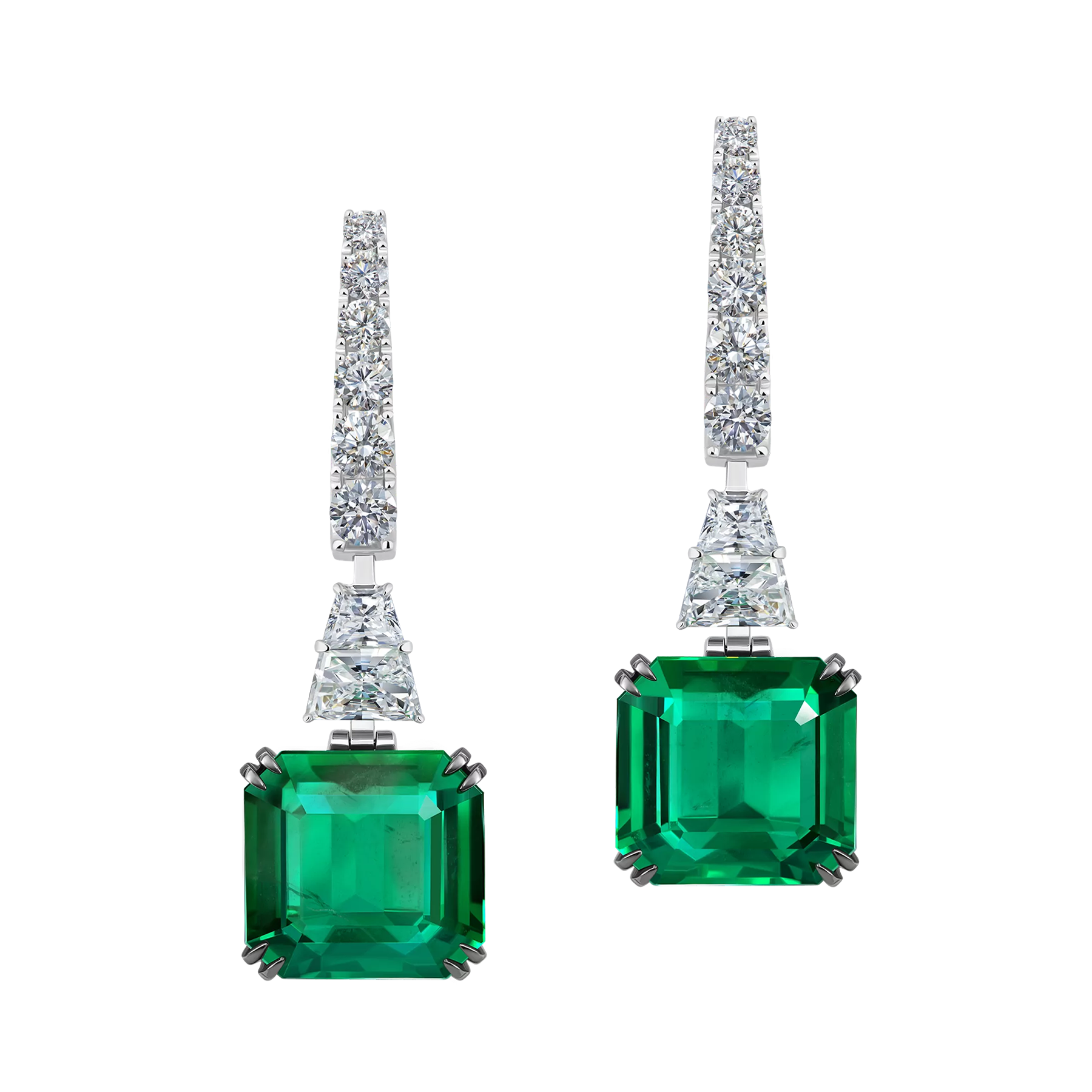 Безупречные в своей лаконичности бриллиантовые серьги из коллекции CHAMOVSKIKH Royal Jewellery приковывают взгляд сиянием коллекционных изумрудов эталонного цвета Vivid Green. Великолепно выполненная ступенчатая огранка раскрывает прекрасную оптику замбийских изумрудов суммарным весом более 22 ct. Феноменальный размер центральных камней в сочетании с 18-ю превосходными бриллиантами превращают украшение в выгодную инвестицию и источник безграничного эстетического удовольствия.