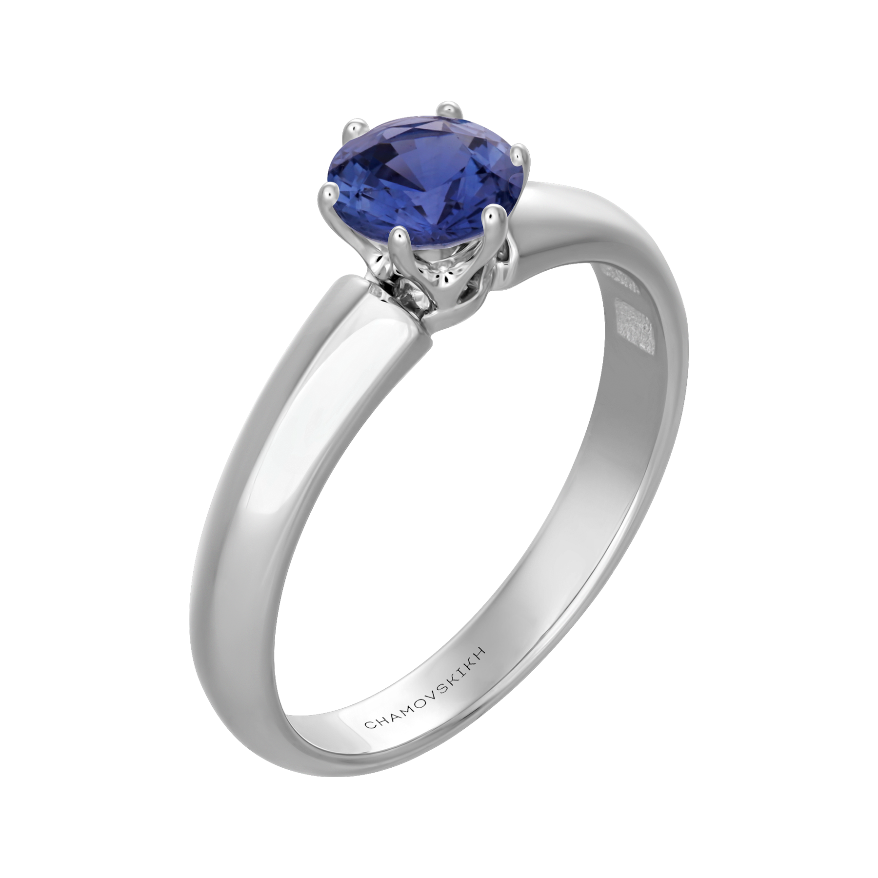 Кольцо с сапфиром и бриллиантами, белое золото, н.керамика