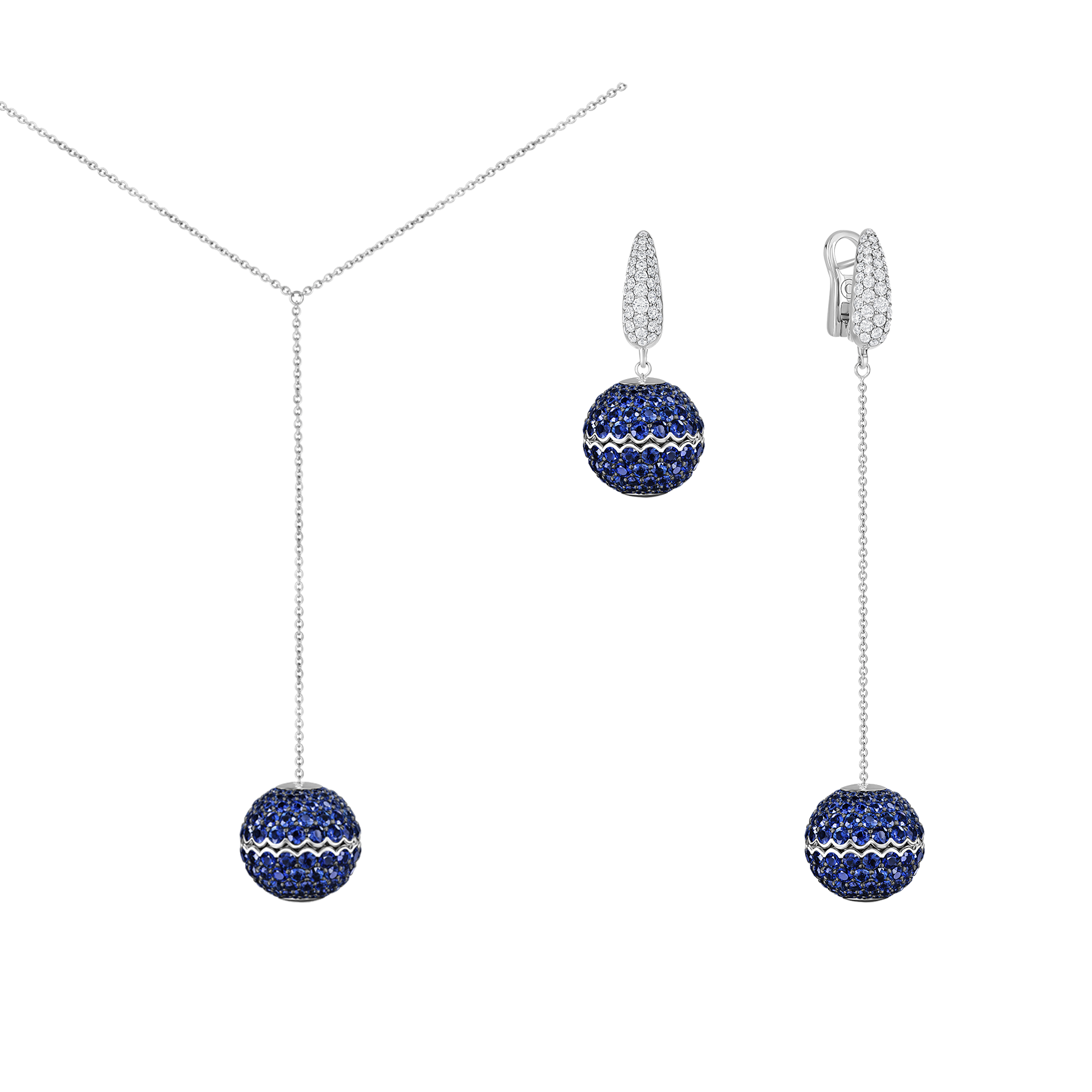 Сет с бриллиантами и сапфирами, белое золото