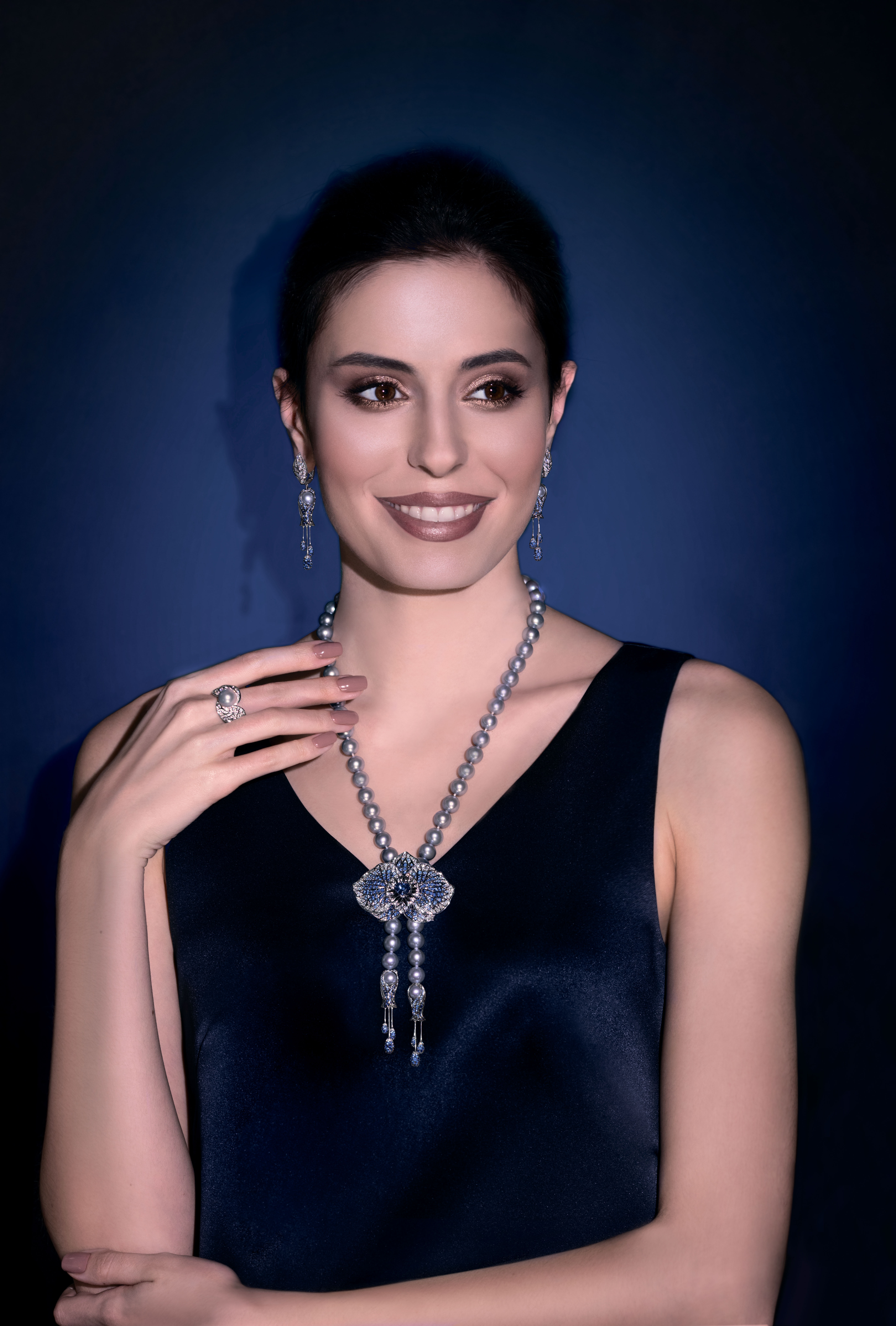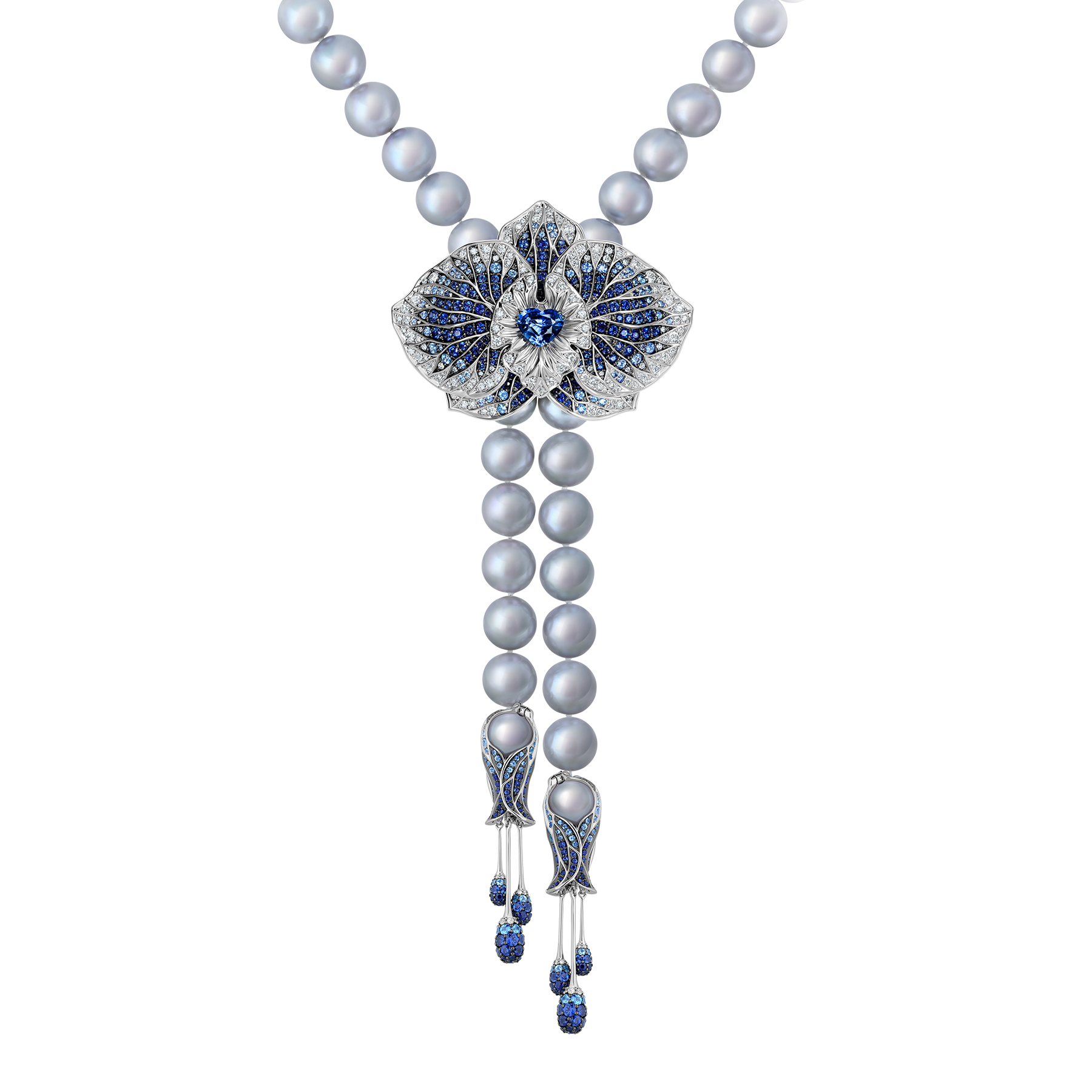 Сет с сапфирами, бриллиантами и жемчугом, белое золото