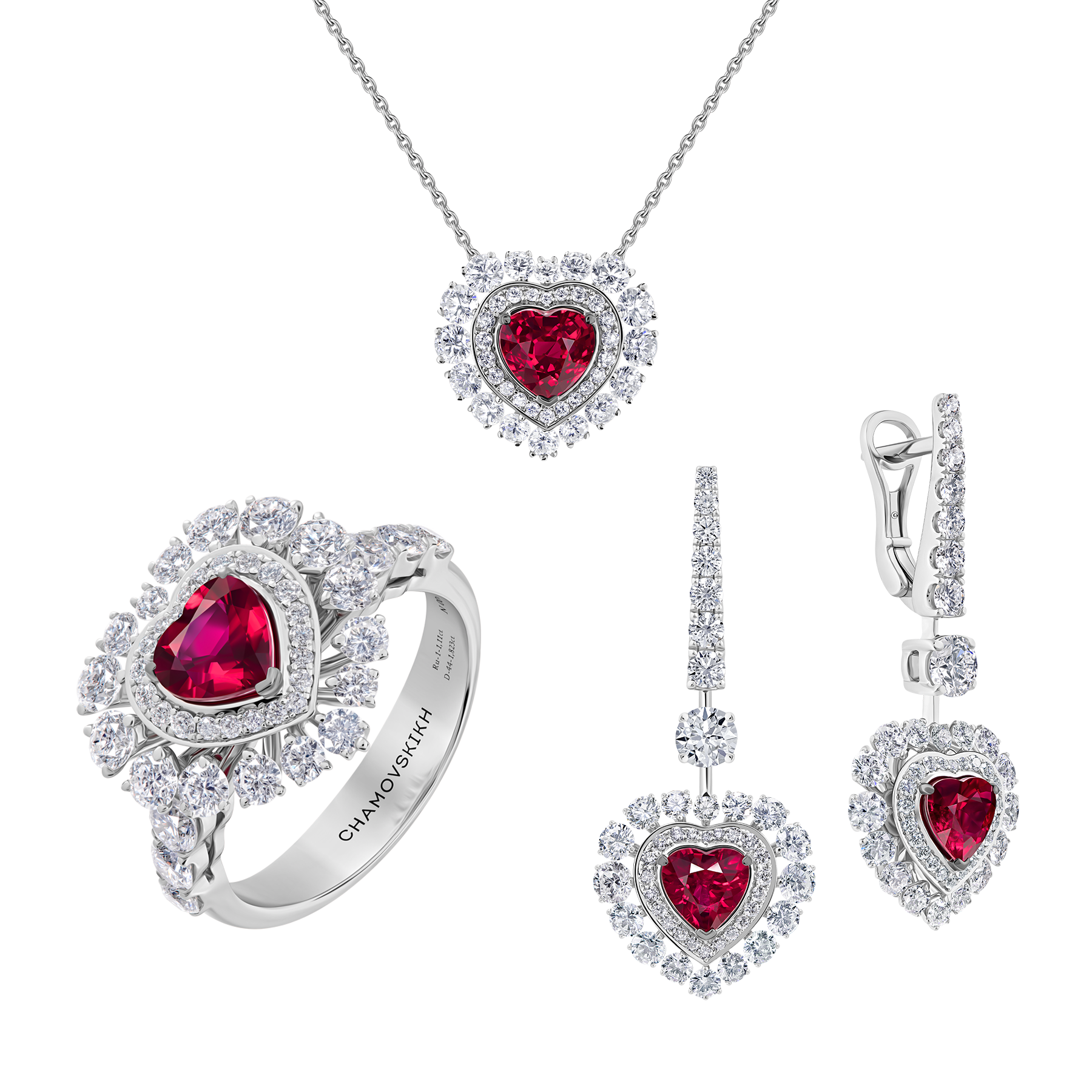 Сет с турмалинами параиба, бриллиантами и жемчугом, белое золото