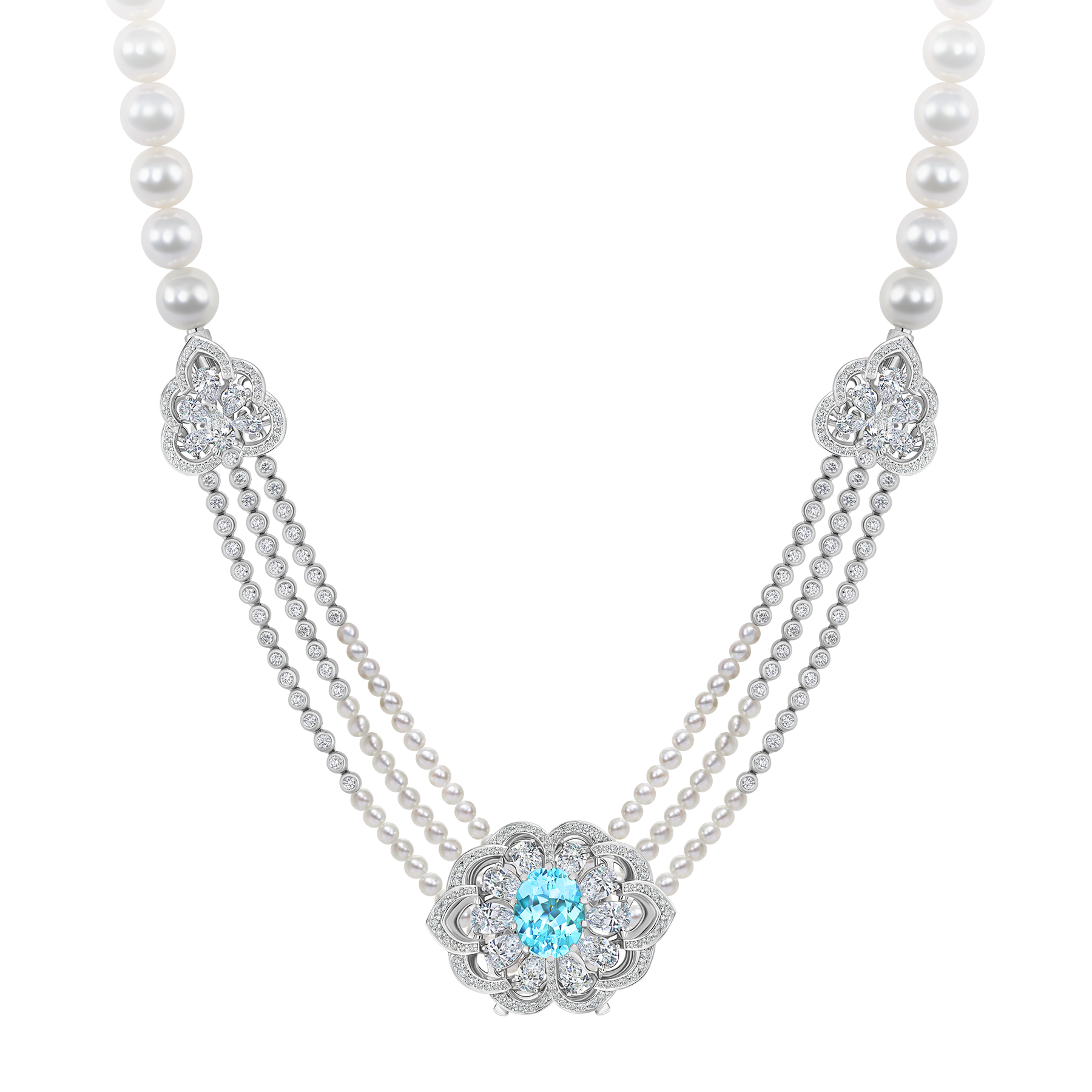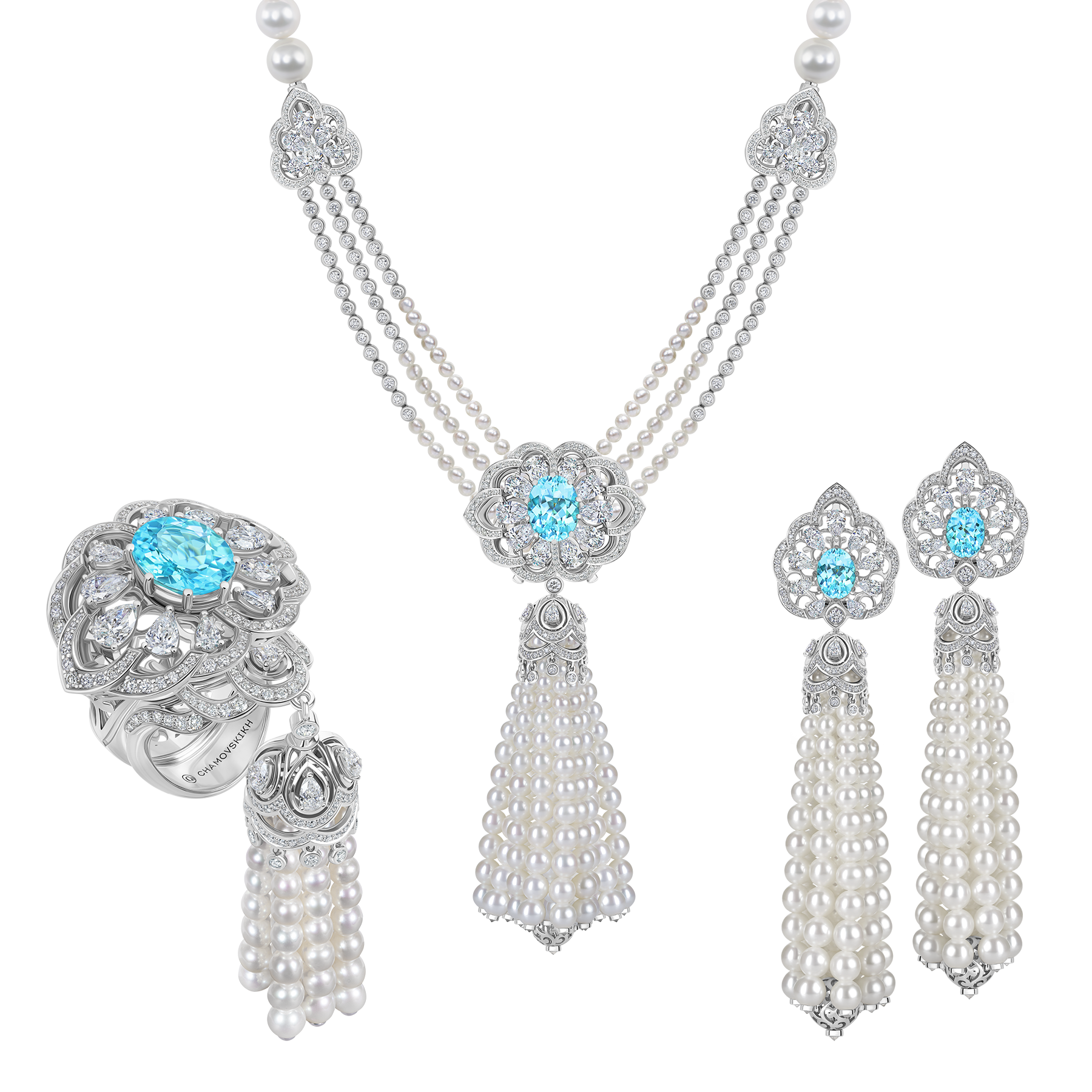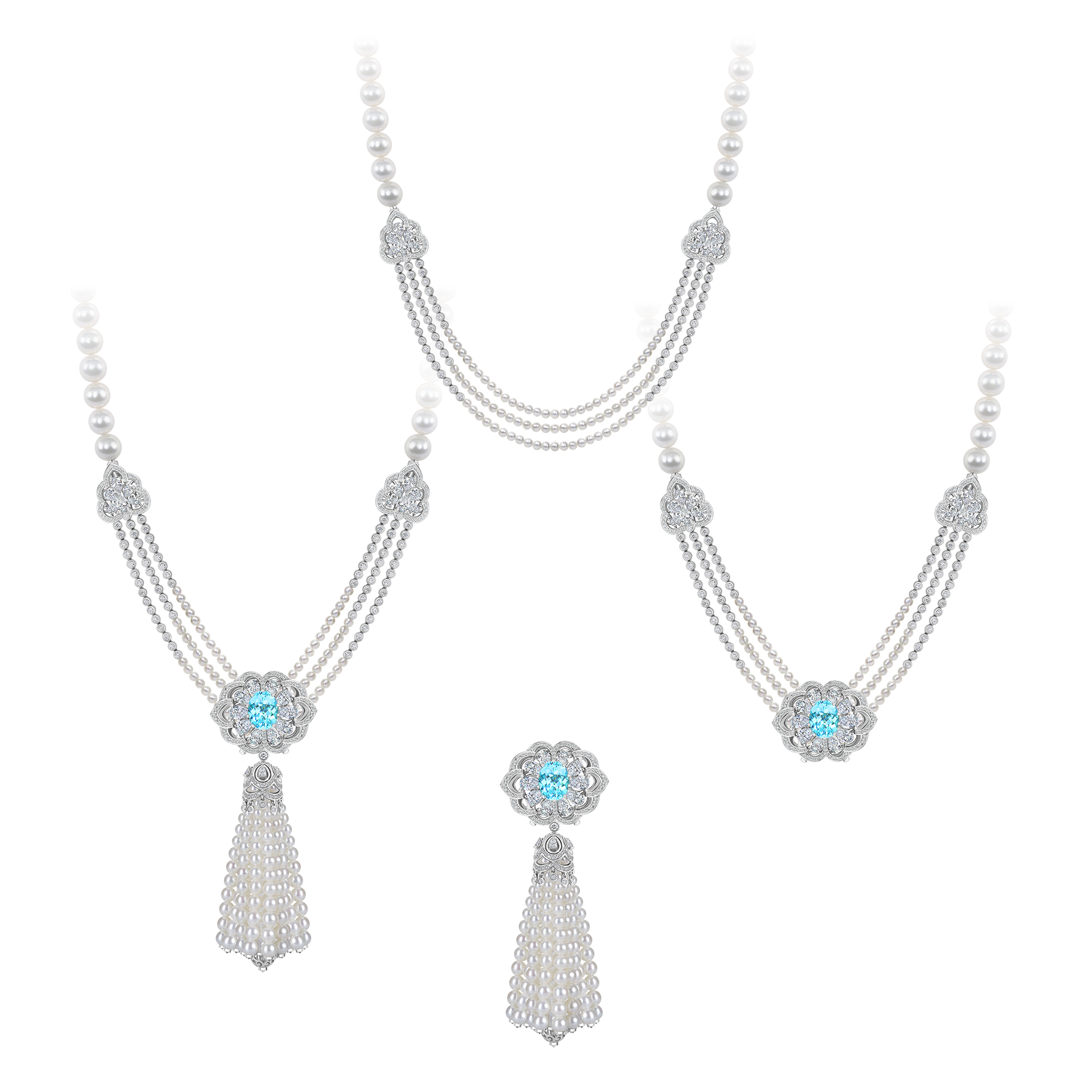 Сет с турмалинами параиба, бриллиантами и жемчугом, белое золото