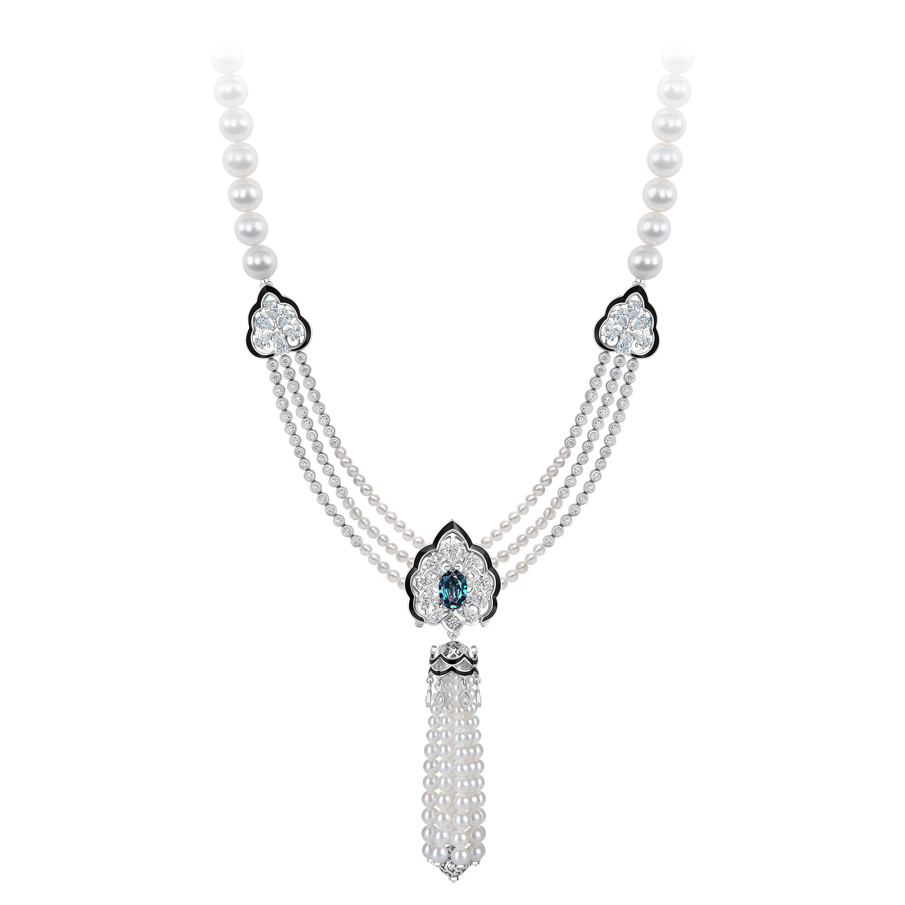 Подвес с александритом, бриллиантами и жемчугом, белое золото, н.керамика