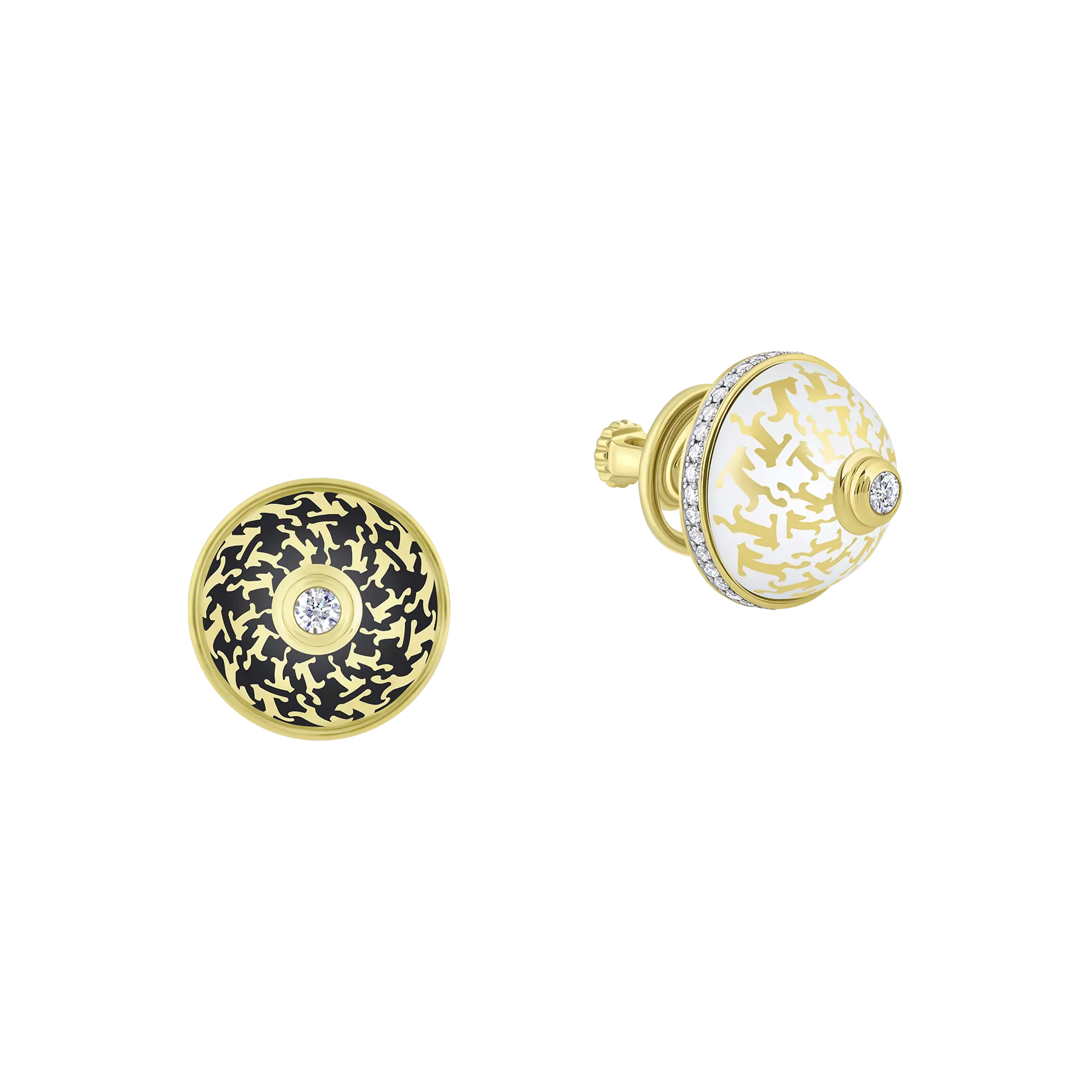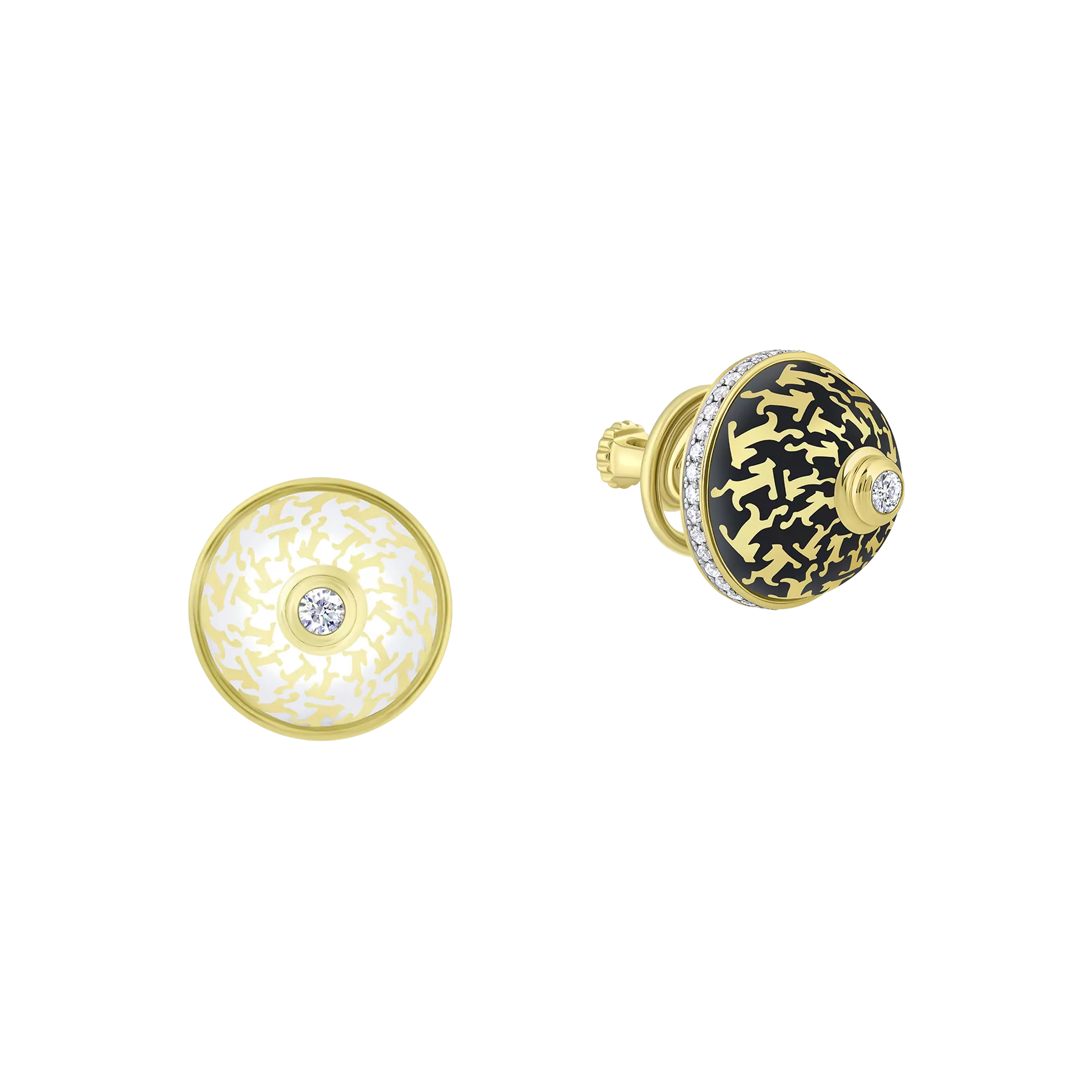 Пусеты с бриллиантами, желтое золото н.керамика