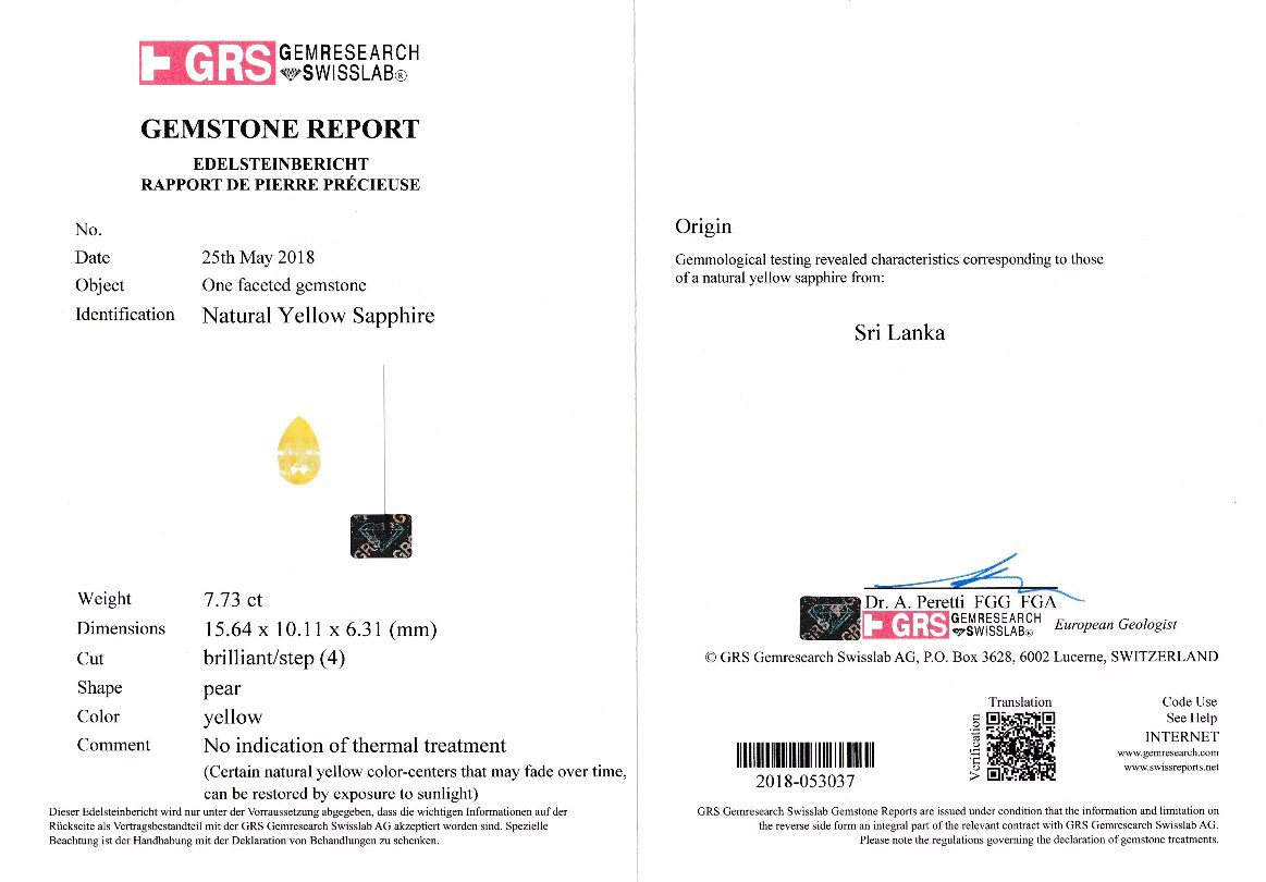 Жёлтый сапфир, SRI LANKA, UNHEATED, Груша, 7,73ct