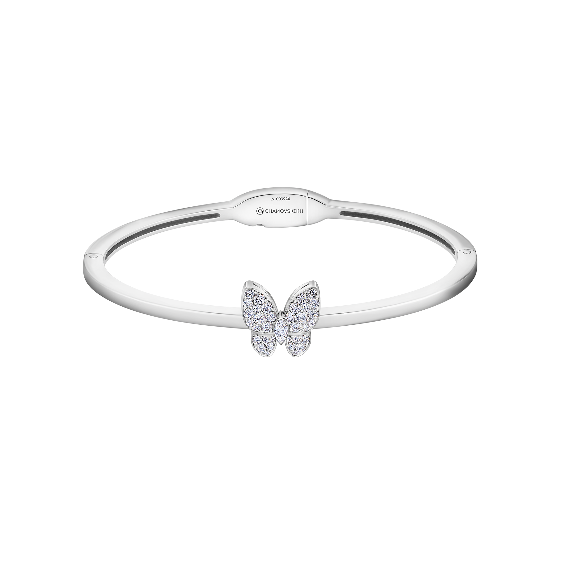 Браслет с бриллиантом и перламутром, белое золото, нанокерамика