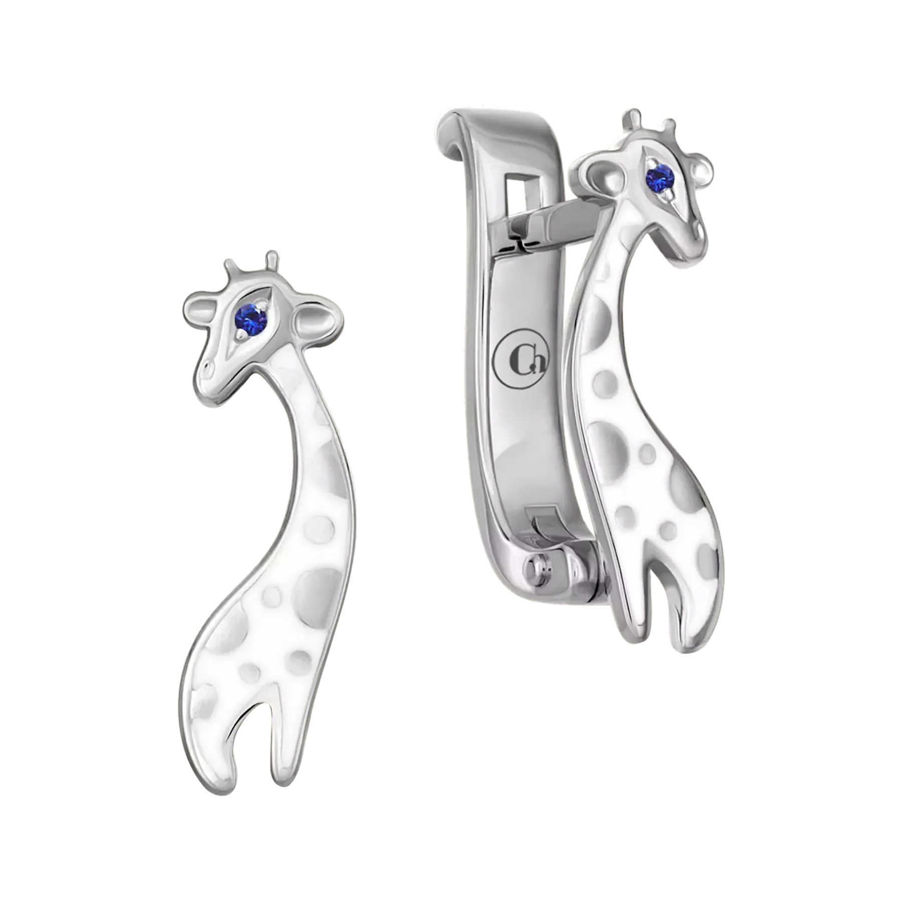 Пусеты с бриллиантами и сапфирами, белое золото, н.керамика