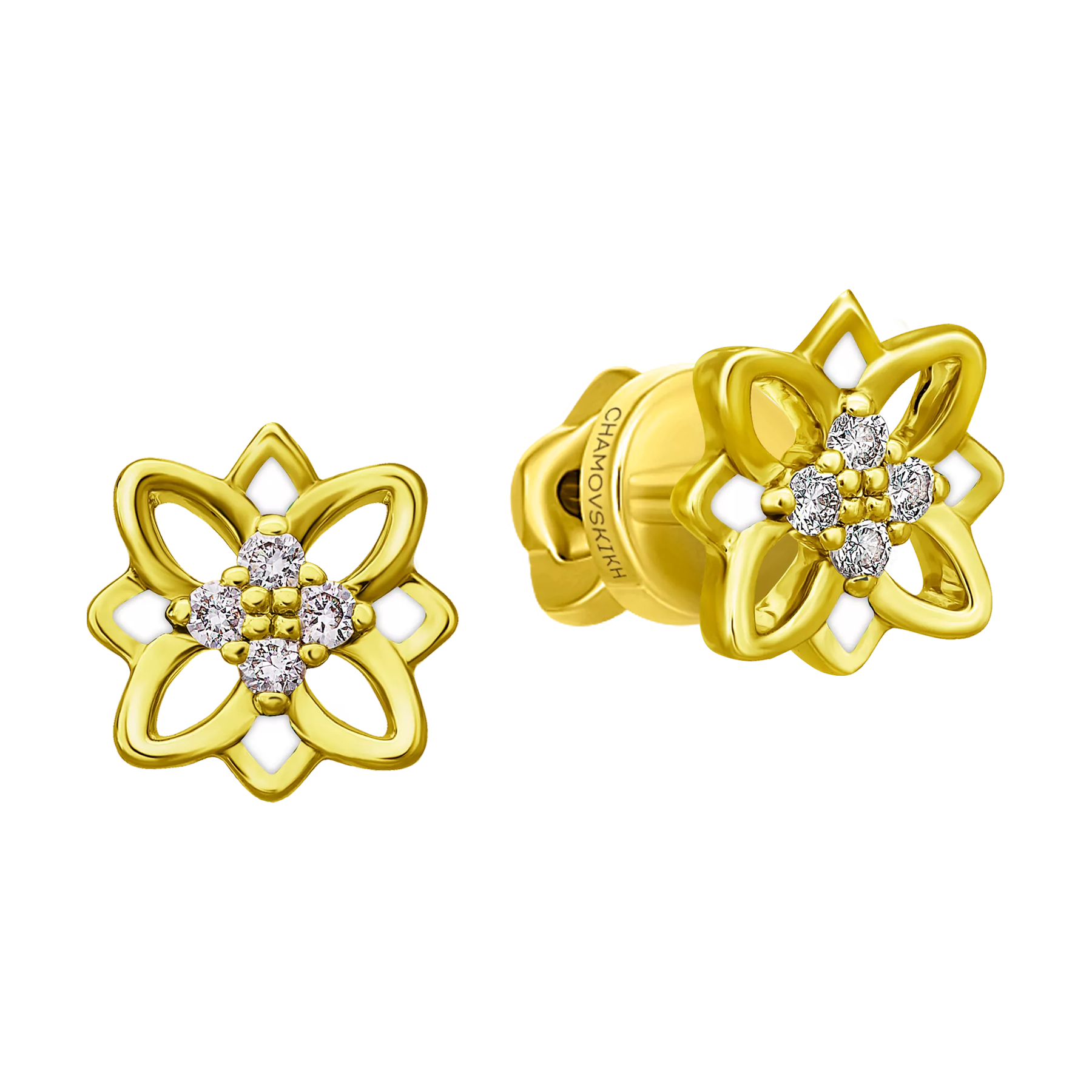 Пусеты с бриллиантами, желтое золото, н.керамика