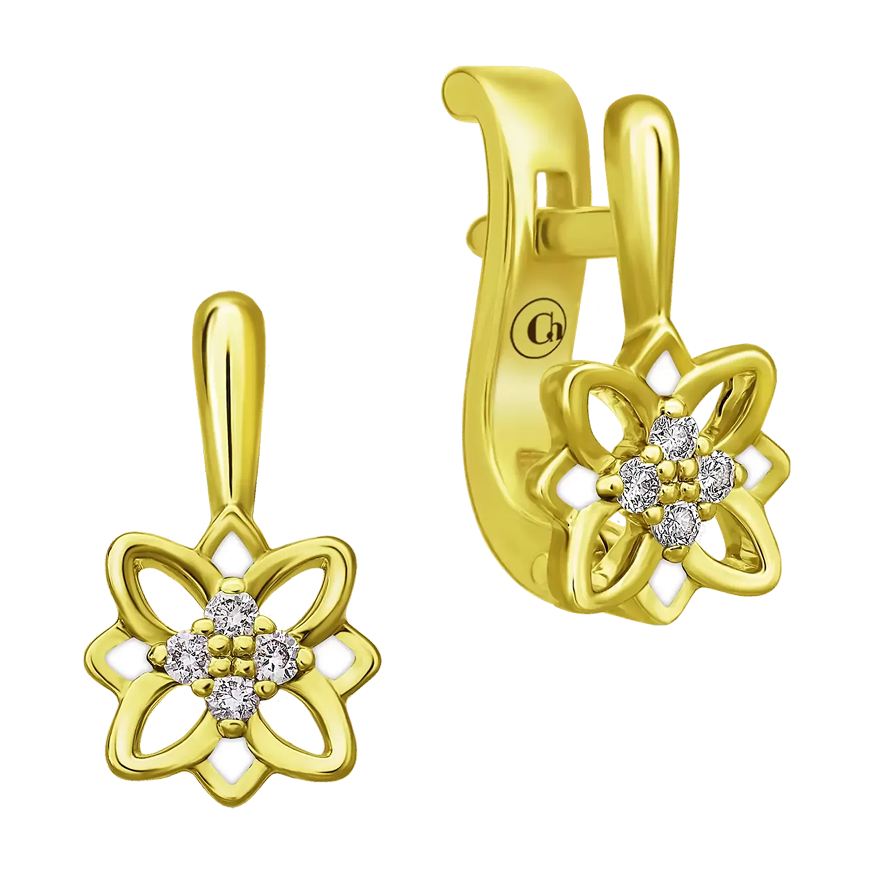Пусеты с бриллиантами, желтое золото, нанокерамика