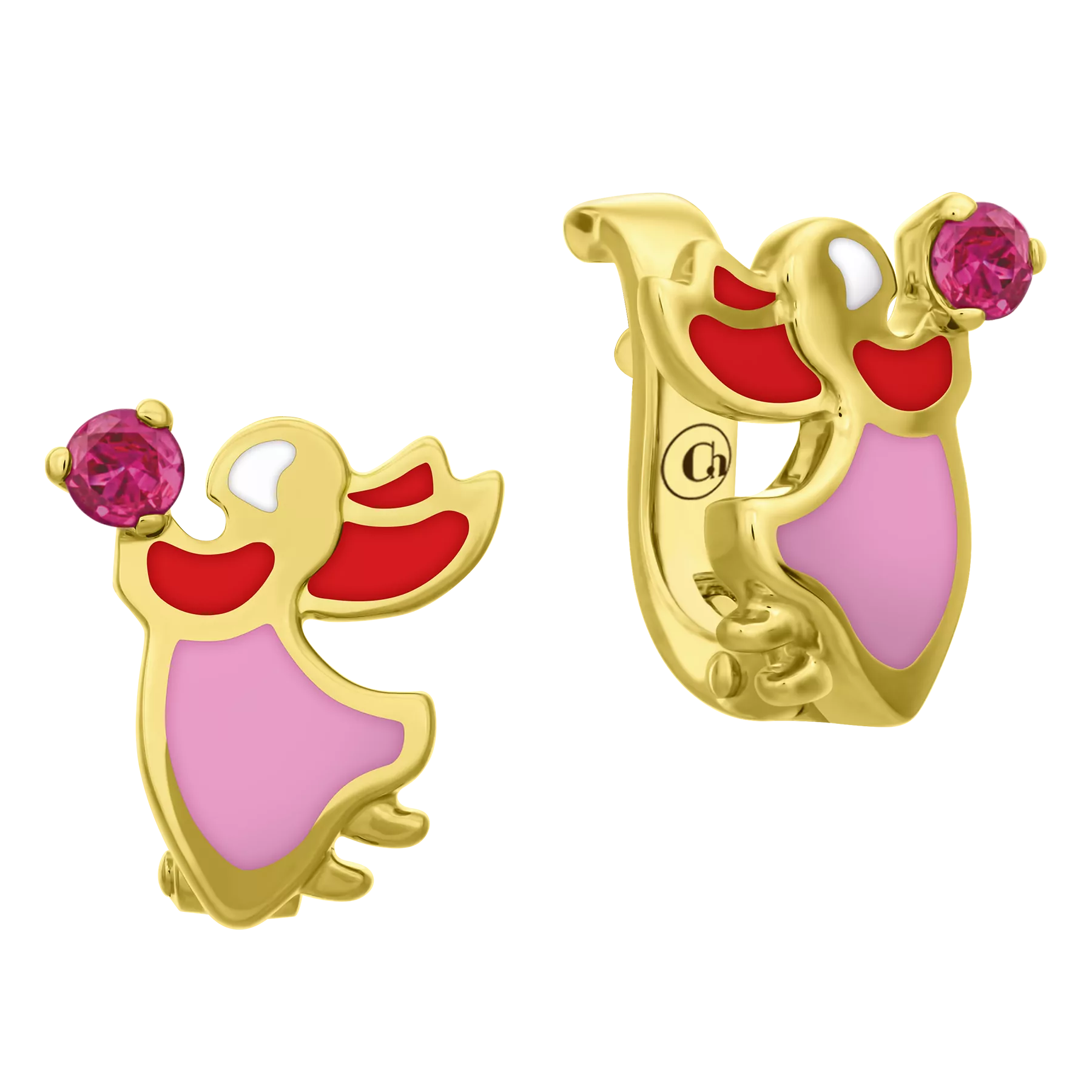 Серьги с рубинами, жёлтое золото