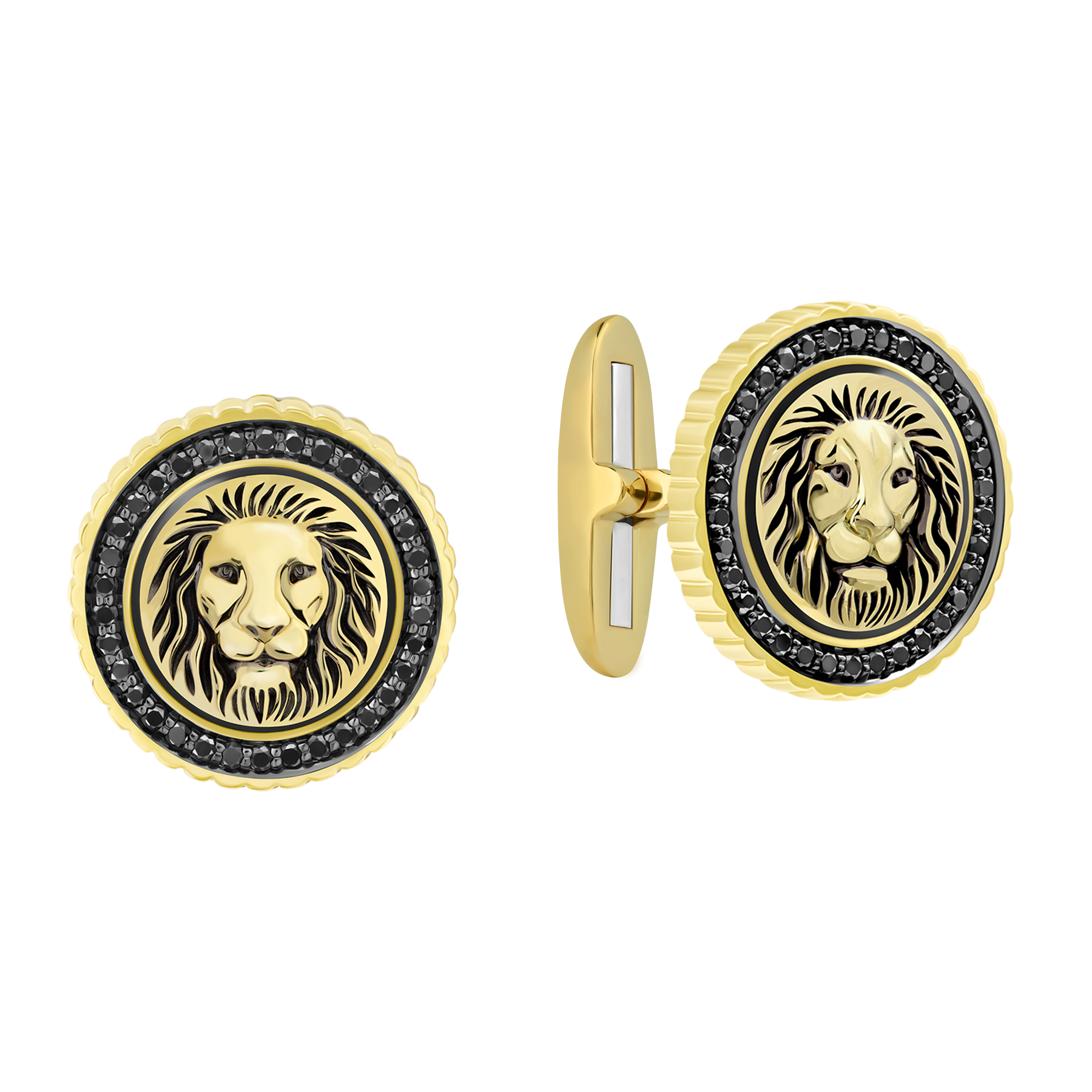 Запонки с чёрными бриллиантами, жёлтое золото, н.керамика