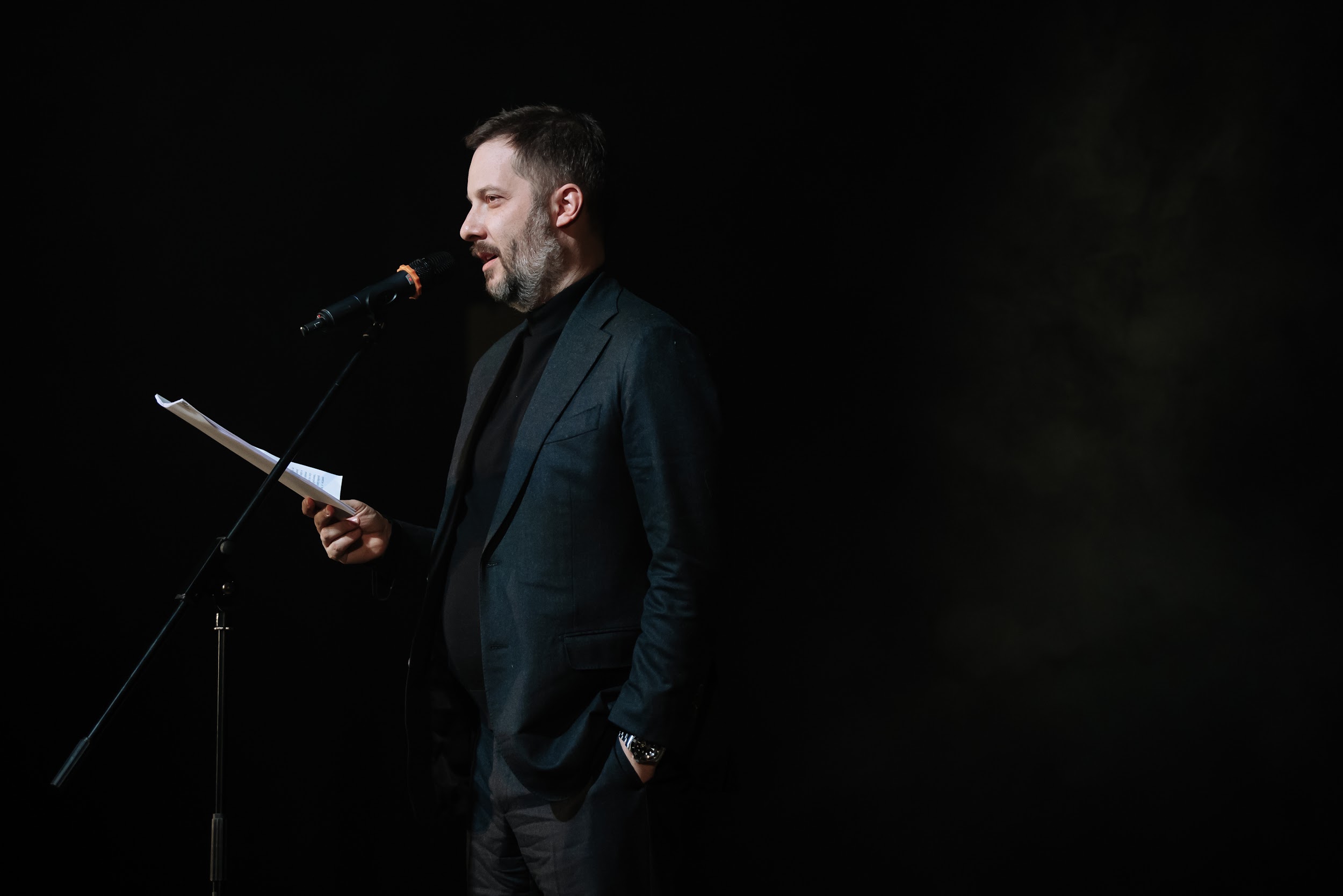 Во втором действии fashion-перформанса «ЖЕНСКОЕ vs. МУЖСКОЕ» гости услышали «БеспринцЫпные чтения» в исполнении автора Александра Цыпкина. Современная проза, актуальная и остроумная, напомнила, что женское не противостоит мужскому, а, напротив, гармонично дополняет его.
