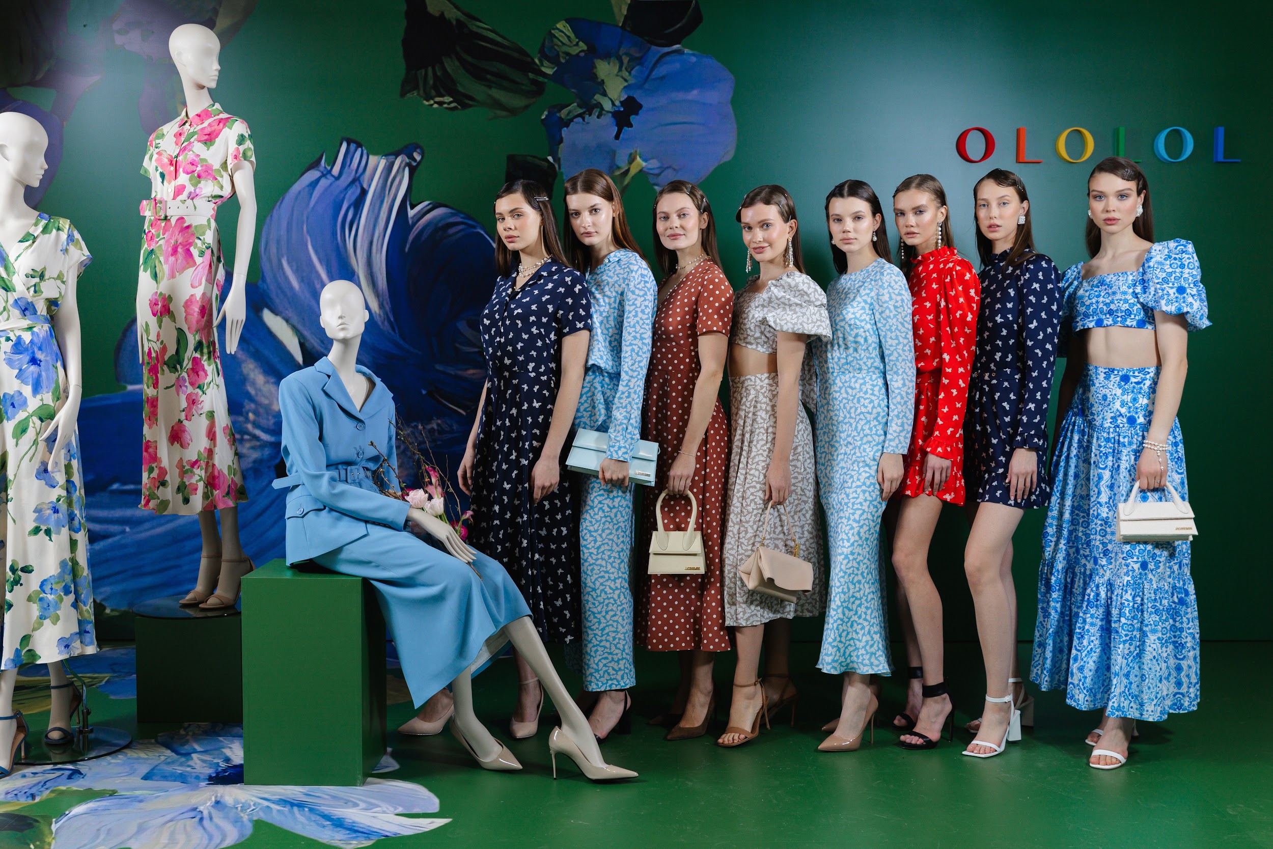 В первом действии гостей ожидало концептуальное шоу — презентация весенней коллекции бренда OLOLOL. Красота и чувственность образов раскрывались в проникновенных монологах актрис, соединенных с классическим балетом. Через истории своих героинь участницы постепенно открывали все новые грани загадочной женской души. Особую роль в каждом сюжете играли платья, которые из предмета гардероба превращались в настоящий источник силы.