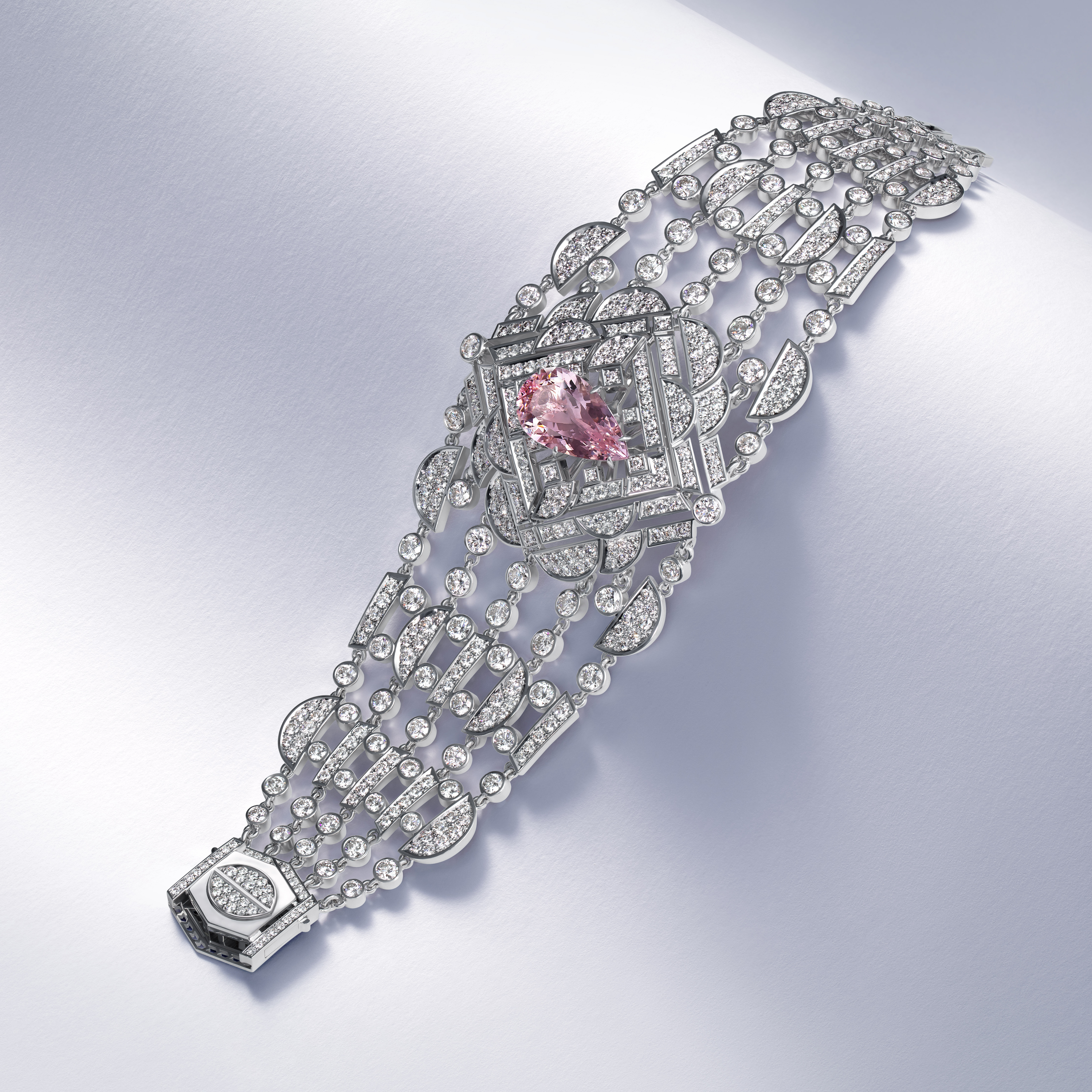 Символ столицы Малайзии — Башни Петронас нашел ювелирное воплощение в изысканном браслете-манжете «Куала-Лумпур». Морганит насыщенного оттенка Purplish Pink и геометричный орнамент передают уникальный колорит страны, рожденный синтезом ар-деко и национальных мотивов азиатского мегаполиса.