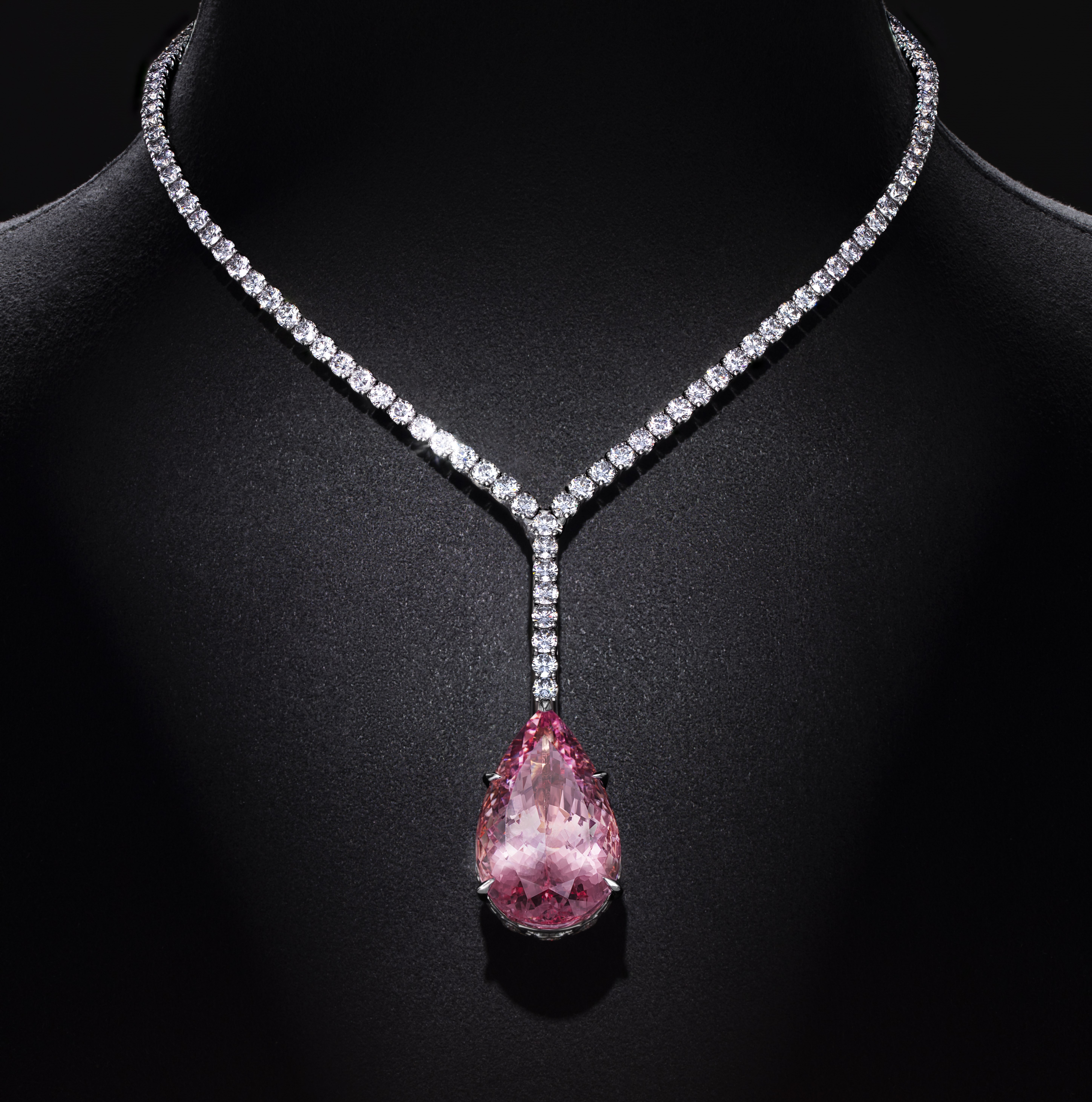 Завораживающий морганит более 47 ct венчает ослепительное бриллиантовое колье, излучая благородство, утонченность и великолепие. Фантазийная огранка раскрывает глубину и насыщенность оттенка солирующего самоцвета.