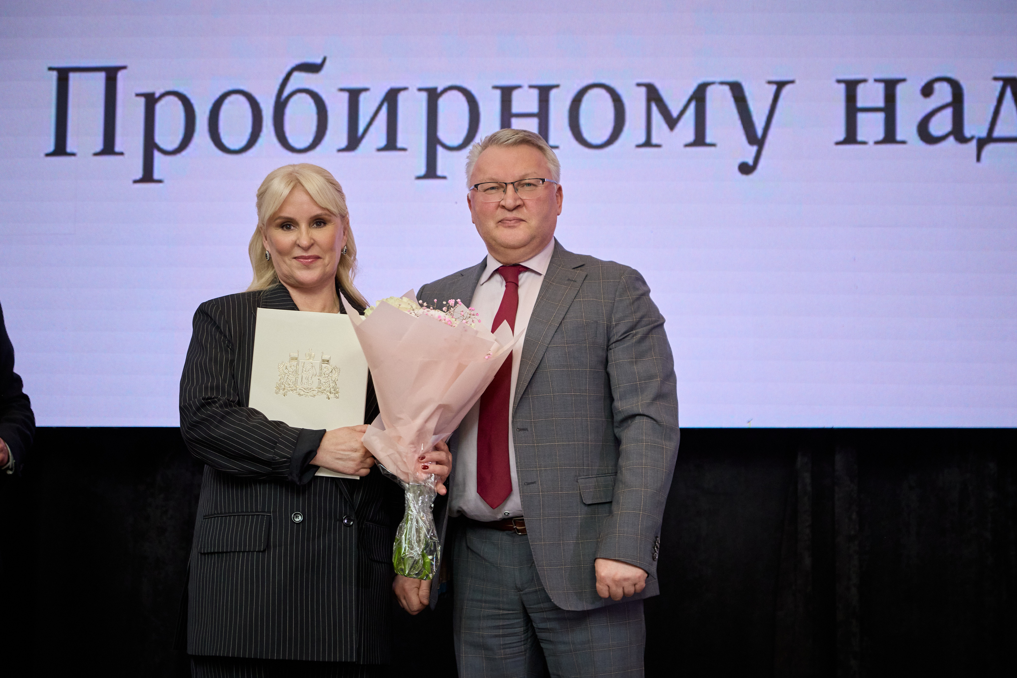 Приветствие от Губернатора Свердловской области Д.В. Паслера передал С.В. Никонов, также поздравивший юбиляров с важной датой. «Урал — регион с богатейшими традициями добычи, обработки, художественной огранки драгоценных металлов и камней… Пробирный надзор вносит большой вклад в обеспечение качества и подлинности изготовления современных ювелирных украшений, защиту интересов государства и граждан, поддержку добросовестных производителей…», — говорится в поздравительном адресе Губернатора.